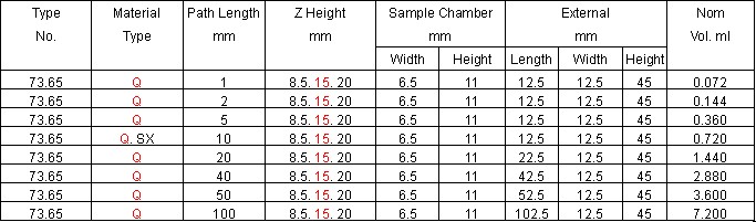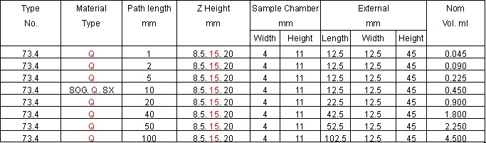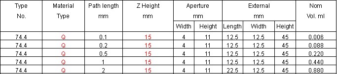 Type 74.4 series Flow Cells Dissolution,Micro,Short Path Length,Long aperture