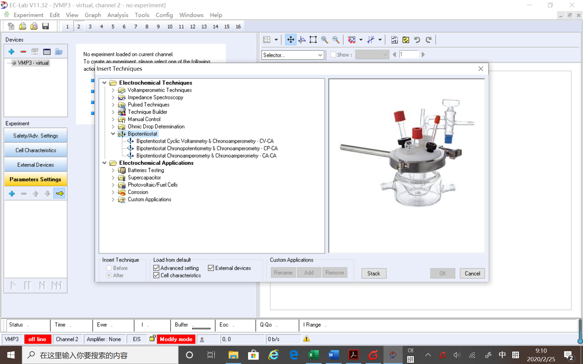 EC-Lab軟件中雙恒電位儀的測試技術包含3種,如下圖。(添加實驗頁面中,Electrochemical Techniques下,Bipotentiostat下。)