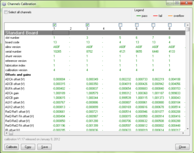 4. 校準結束后,如果校準數據中有紅色數據,說明校準失敗,會彈出校準失敗的對話框,這說明通道板上某些元器件可能有損壞,需要報修。此時需要點擊校準對話框下方的save,并將校準數據發給我們。