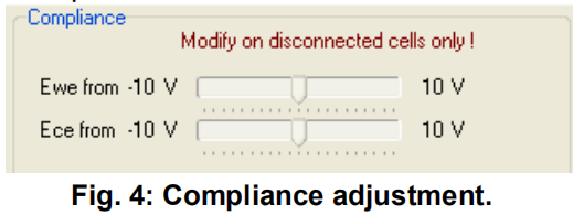l 因為整個模組的電壓高于10V,還需要調節主通道的槽壓。調節槽壓可在“Advanced Settings”中找到“Compliance”,并選擇所需槽壓(Fig.4)。最高可調節為20V。
